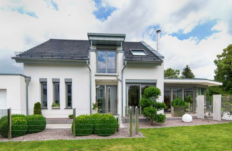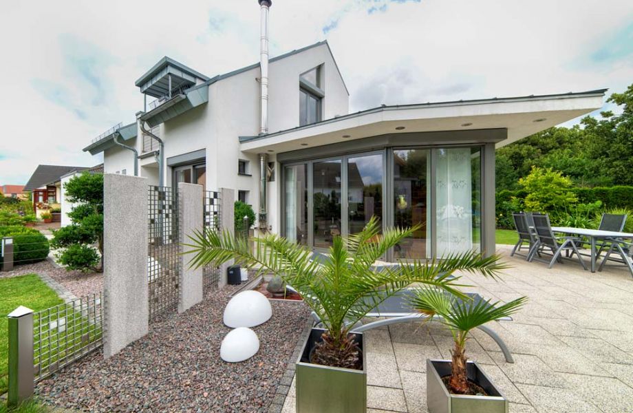 Das Einfamilienhaus Berger besticht durch seine klare Gestaltung. Der großzügig verglaste Wintergarten bildet einen harmonischen Übergang zwischen Innen- und Außenraum. Die geschmackvoll gestalteten Außenanlagen laden zum Verweilen im Freien ein.
